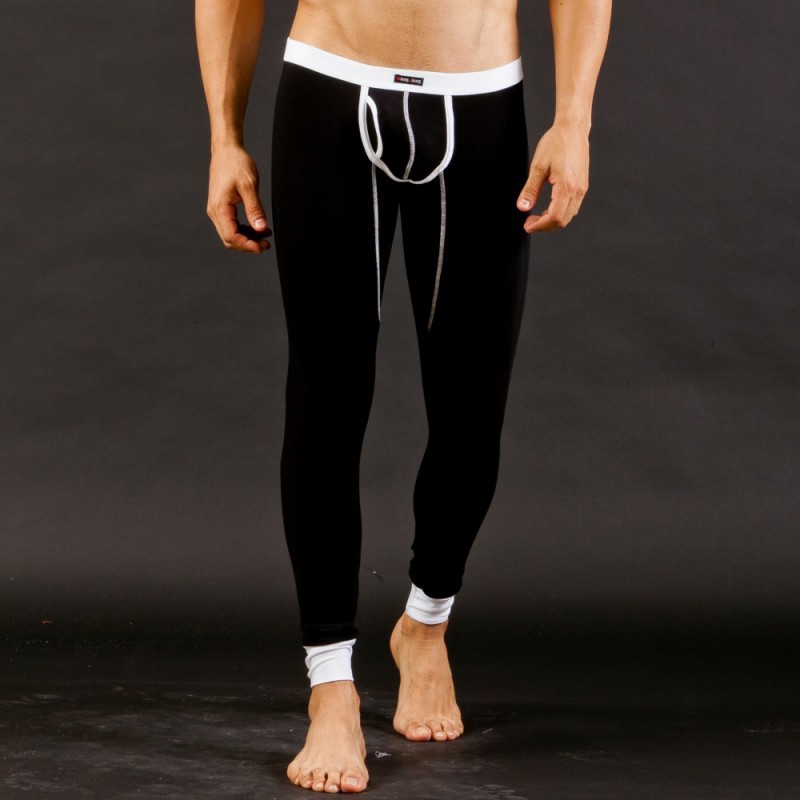 Black Men's winter thermal underwear modal sleep bottoms lounge pants #3002CK