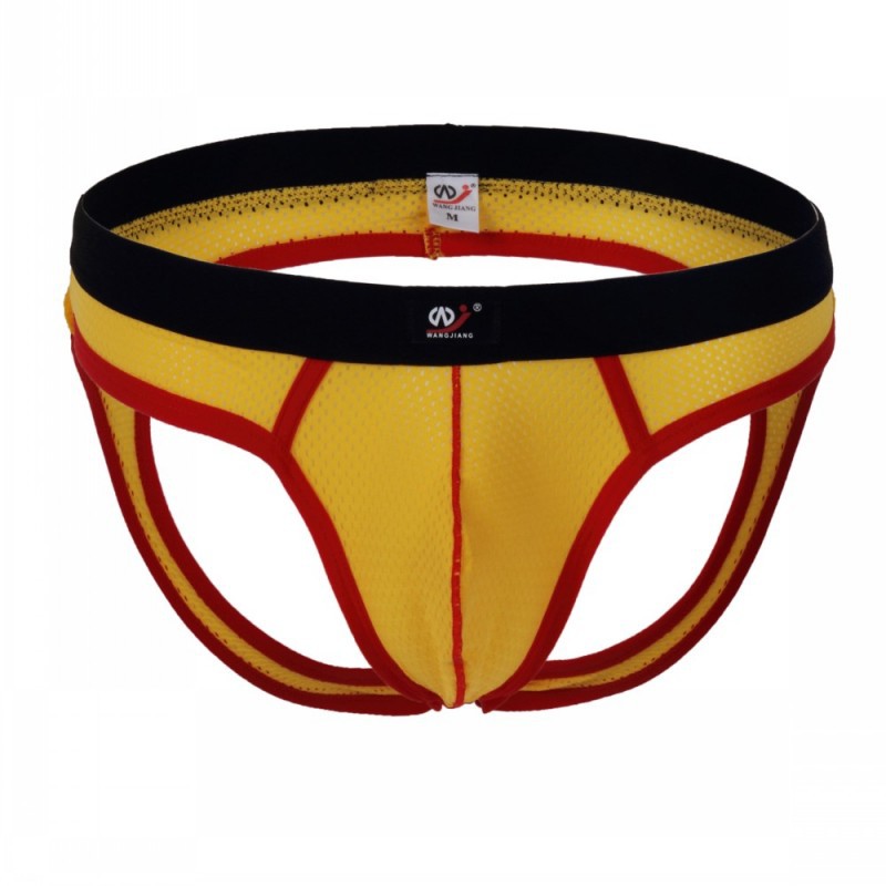 #1001SH Yellow Sexy Gay Men's underwear 3pcs mesh perforated holes briefs underpants panties