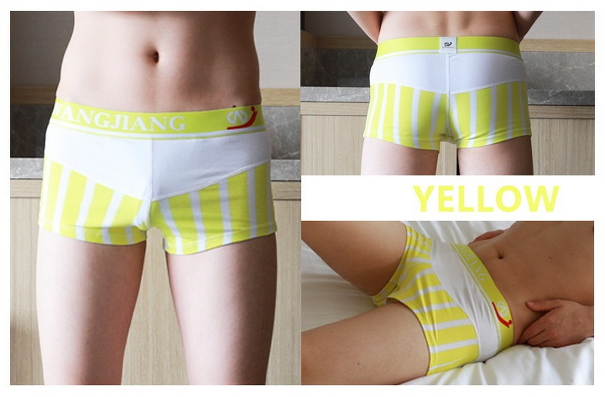 3PK Sexy men's underpants lingerie cotton blend striped patchwork mid-rise pouch boxer briefs underwear Yellow #1021PJ