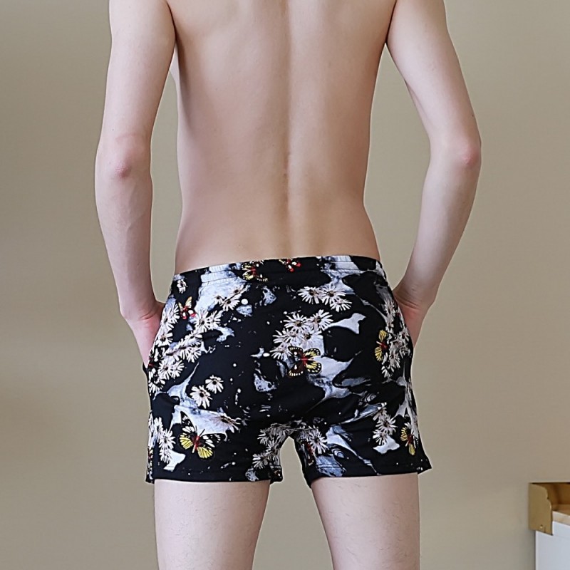 Black flowers printing boxer shorts men's sexy causal beach lounge shorts #4026B