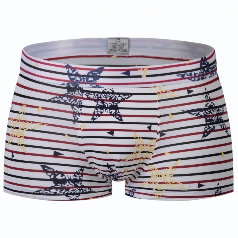 Men's underwear lingerie Ice silk stripes graphic printed pouch boxer briefs underpants #5009PJ
