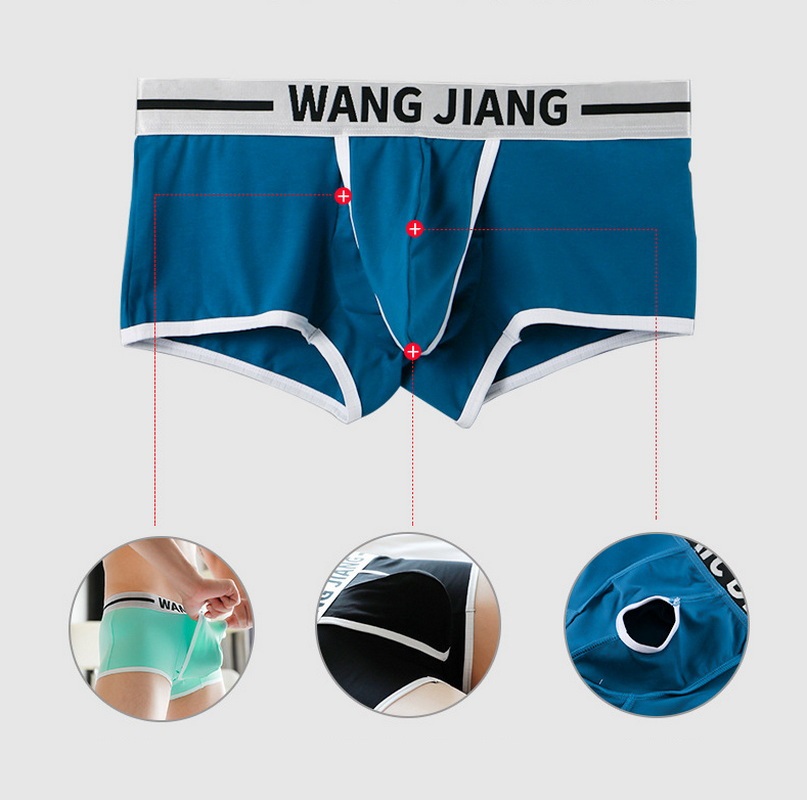 Men's sexy underwear Lingerie cotton blend solid pouch separator boxer briefs underpants Navy #5020PJ