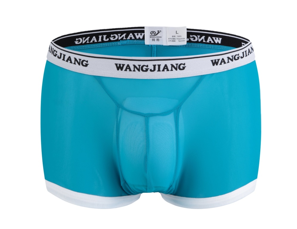 Blue Men's sexy underwear mesh transparent gauze U bag pouch boxer briefs #5001PJ