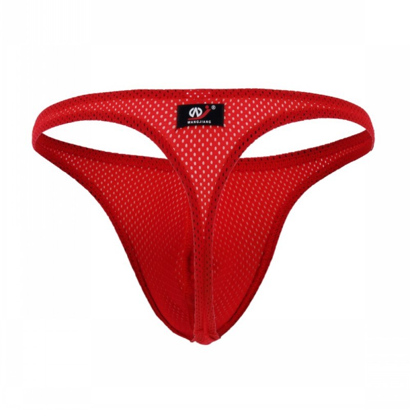 #1001DK Red or mixed colors 3pcs/lot Men's underwear sexy mesh perforated U bag thongs g-strings t-strings