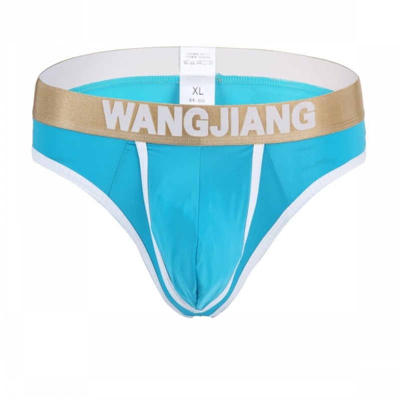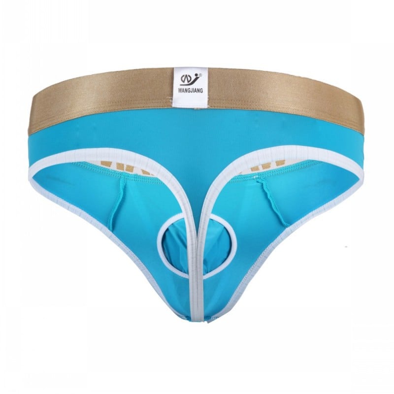 #5008DK Blue 3pcs Gay Men's sexy underwear extra-thin ice silk pouch thongs g-string t-strings