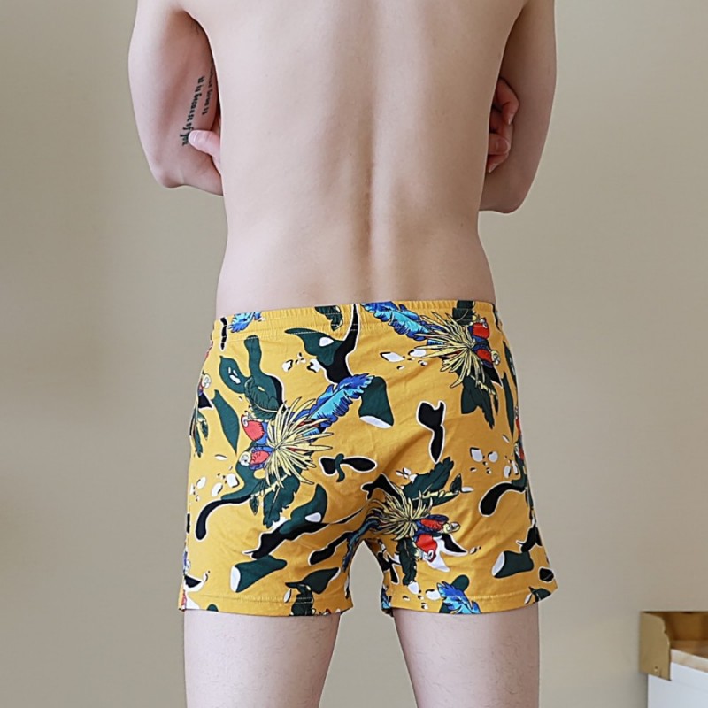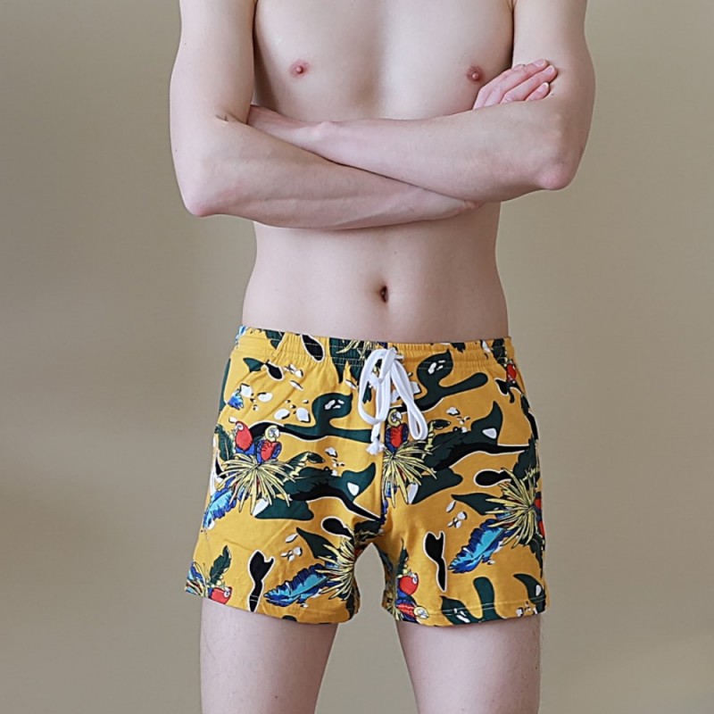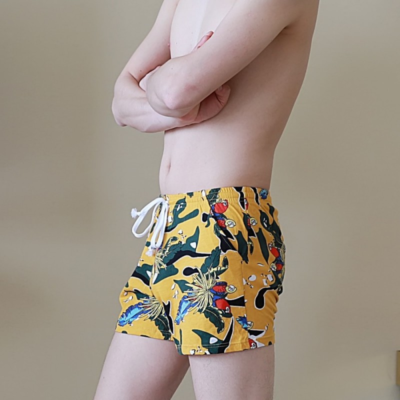 Yellow plants printing boxer shorts men's sexy causal beach lounge shorts #4026B