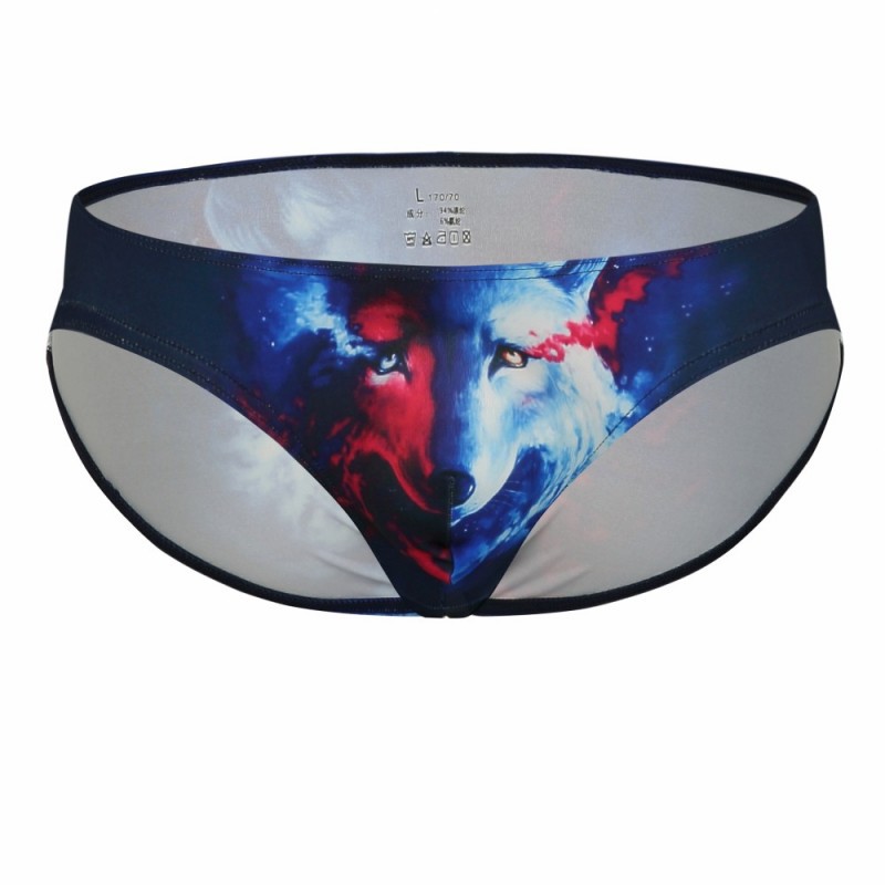 Royal blue Wolf Printed Men's sexy animal Briefs Underwear Underpants #1034SJ