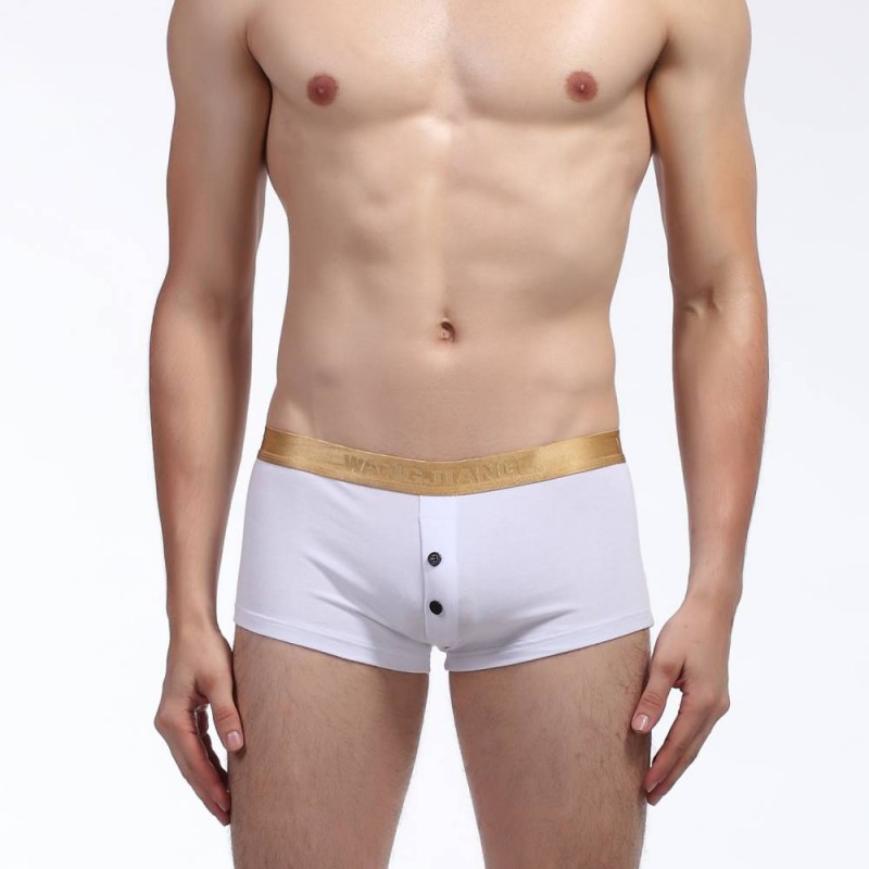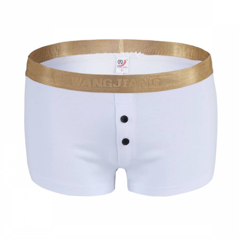 Men's sexy underwear cotton blend buttons boxer briefs White #4011PJ