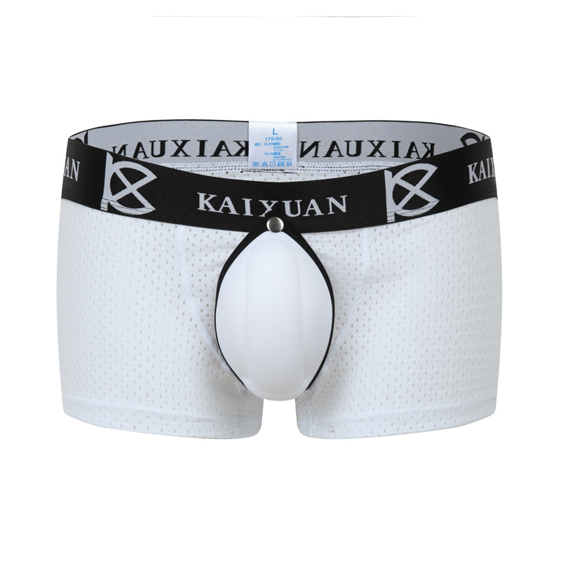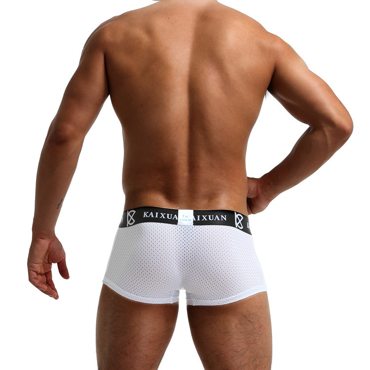 Sexy men's underwear ice silk mesh perfortaed pouch quick-dry boxer briefs underpants White #KX010PJ
