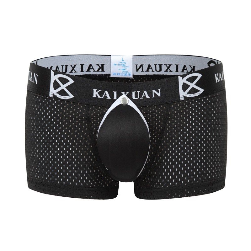 Black Men's sexy underwear ice silk mesh perfortaed quick-dry pouch boxer briefs underpants #KX010PJ