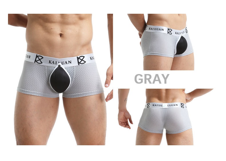 Gray Men's sexy underwear ice silk mesh perfortaed quick-dry pouch boxer briefs underpants #KX010PJ
