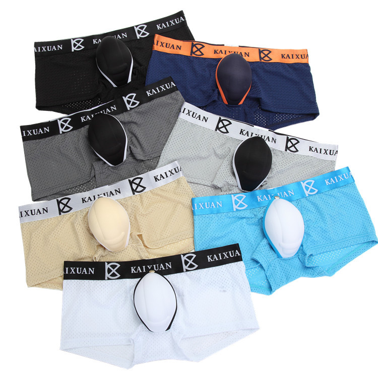 Men's sexy underwear ice silk mesh perfortaed quick-dry pouch boxer briefs underpants Dark Gray #KX010PJ
