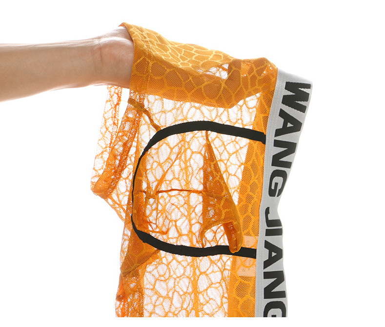 Gold Youth Physiological underwear men's sexy mesh gauze see-through JJ boxer briefs underpants #3057PJ