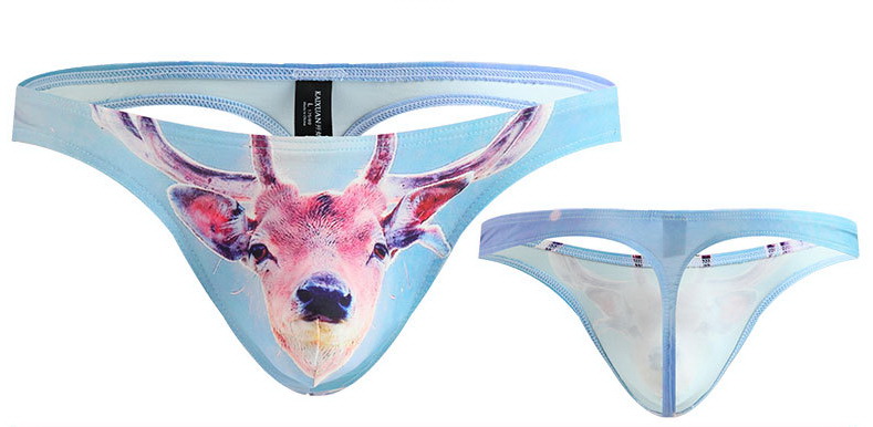 Pink deer Men sexy underwear Tanga funny graphic printed thong t-string 3PK #1049DK
