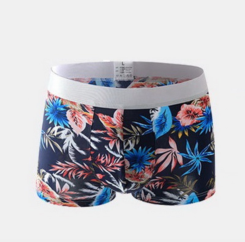 Sexy Men's underwear lingerie Ice silk Leaves graphic printed pouch boxer briefs underpants #5010PJ