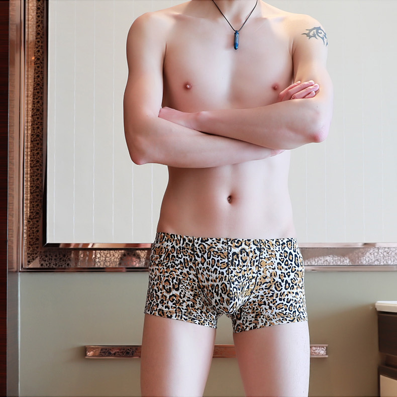 Men's sexy underwear lingerie Leopard graphic printed pouch boxer briefs underpants #3033PJ