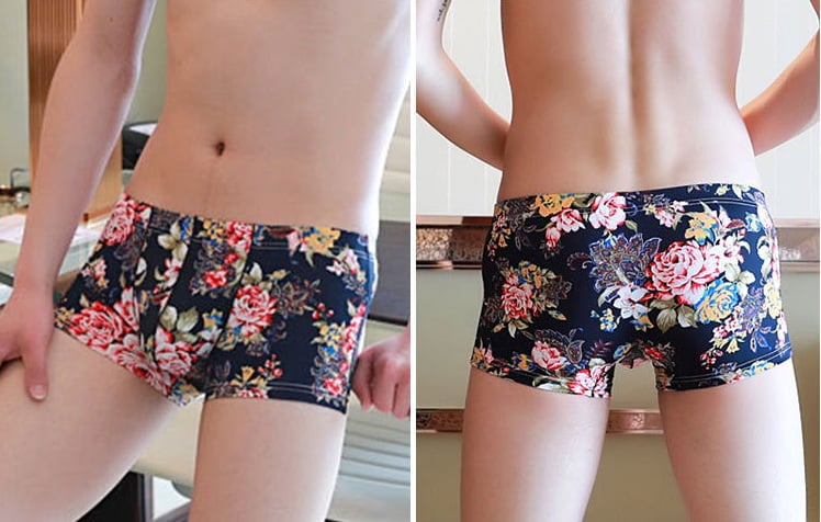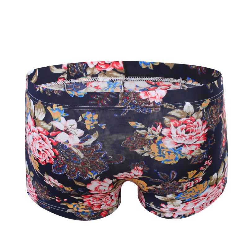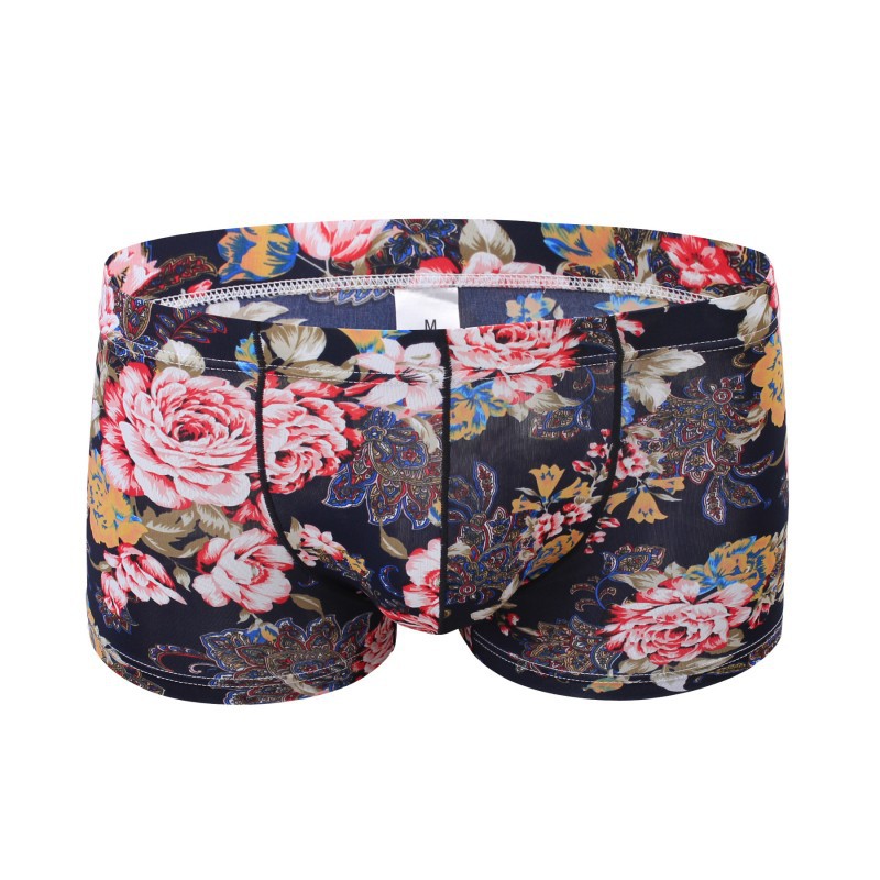 Rose graphic printed Men's sexy underwear lingerie pouch boxer briefs underpants Navy Blue #3033PJ