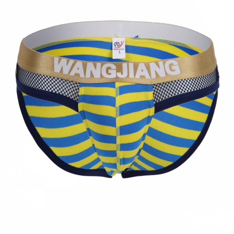 Clearance Sale 2PK Men's underwear cotton mesh striped pouch briefs underpants Yellow #4013SJ
