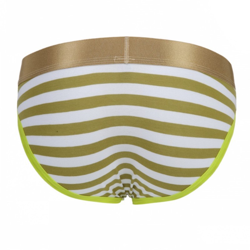 Clearance Sale 2PK Men's underwear cotton mesh striped pouch briefs underpants Dark Yellow #4013SJ
