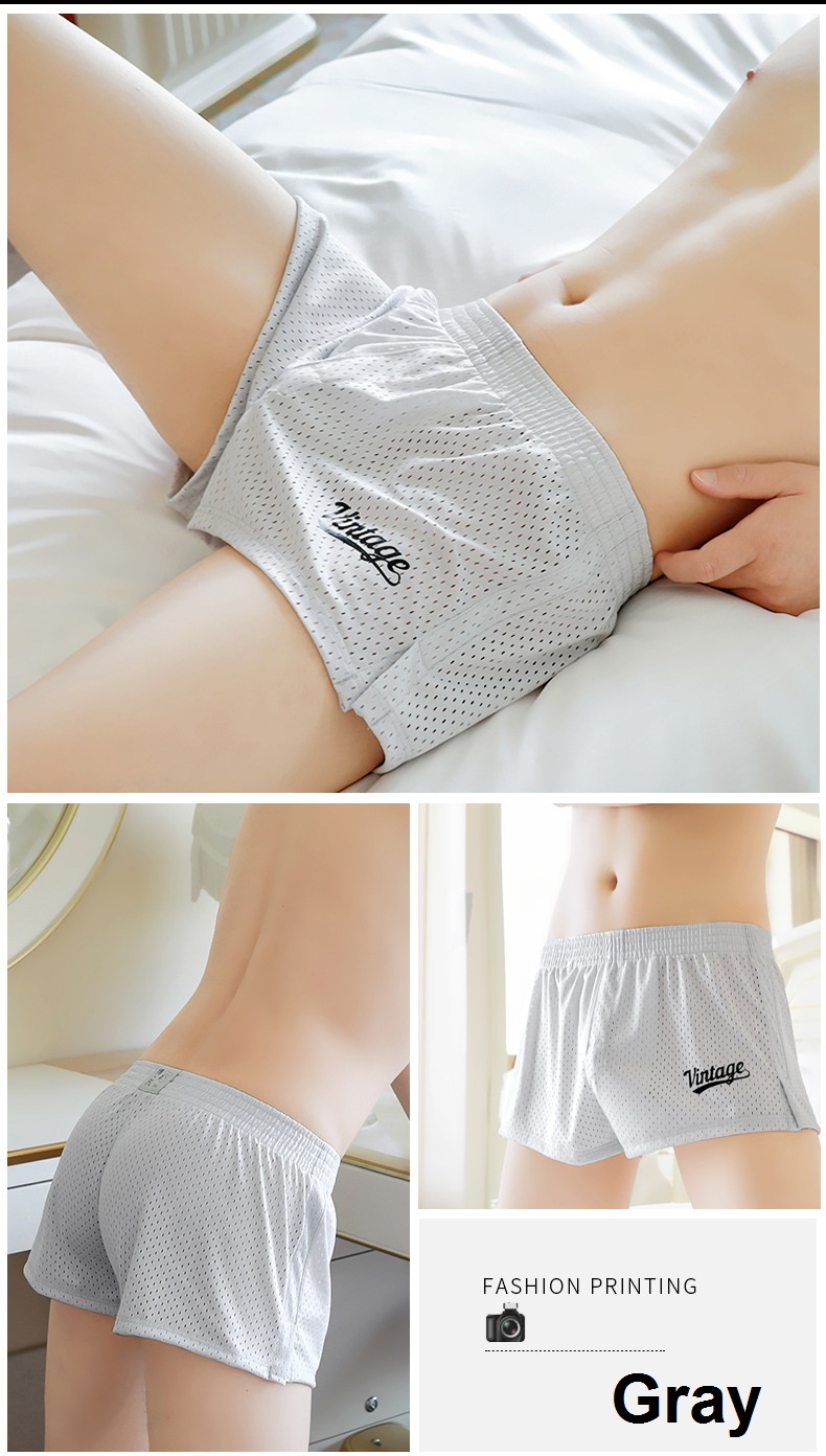 Gray 2PK Men's sexy underwear ice-silk mesh holes quick-dry loungewear boxer shorts 4034JJK