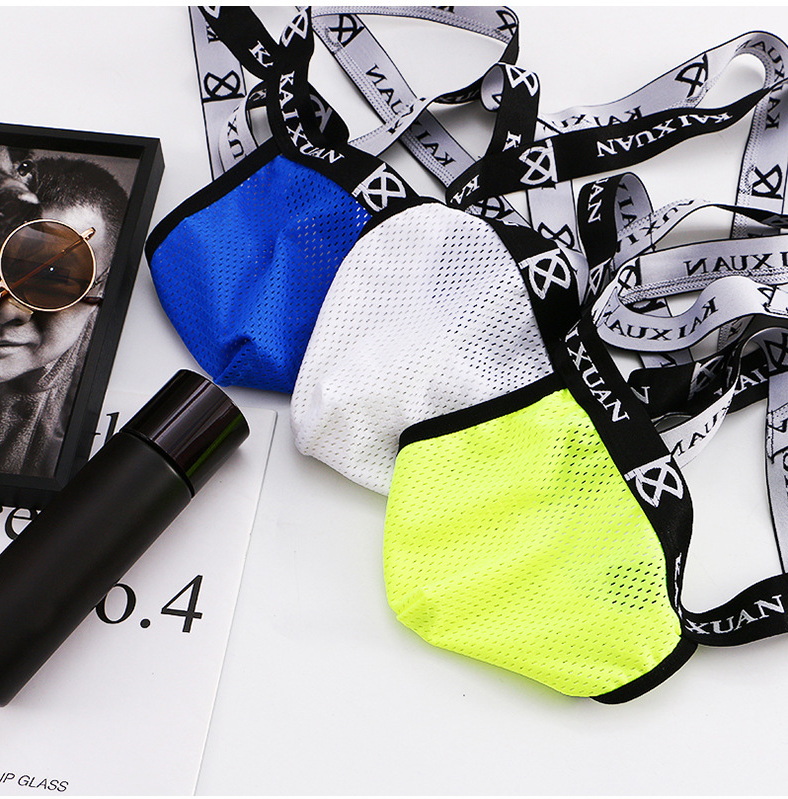 4PK Multi-color Men's underwear sexy gay lingerie mesh holes sheer cut-out double thongs underpants KX022SD